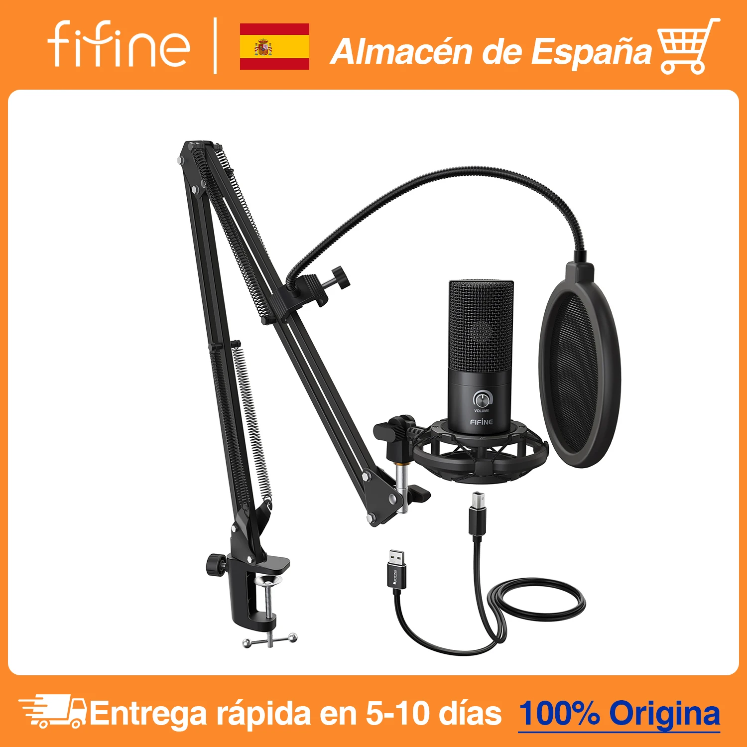 Micrófono de condensador USB FIFINE con perilla de ganancia, micrófono de grabación de Metal para estudio en casa, Podcasting, voz, computadora portátil, Windows -K669